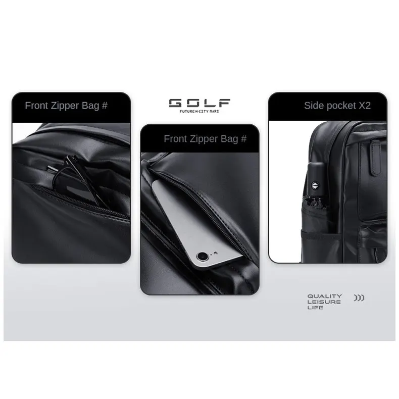External: 2 side pockets, 2 front zipper pockets, 1 iPad compartment, 1 computer compartment, 1 rear independent computer compartment.